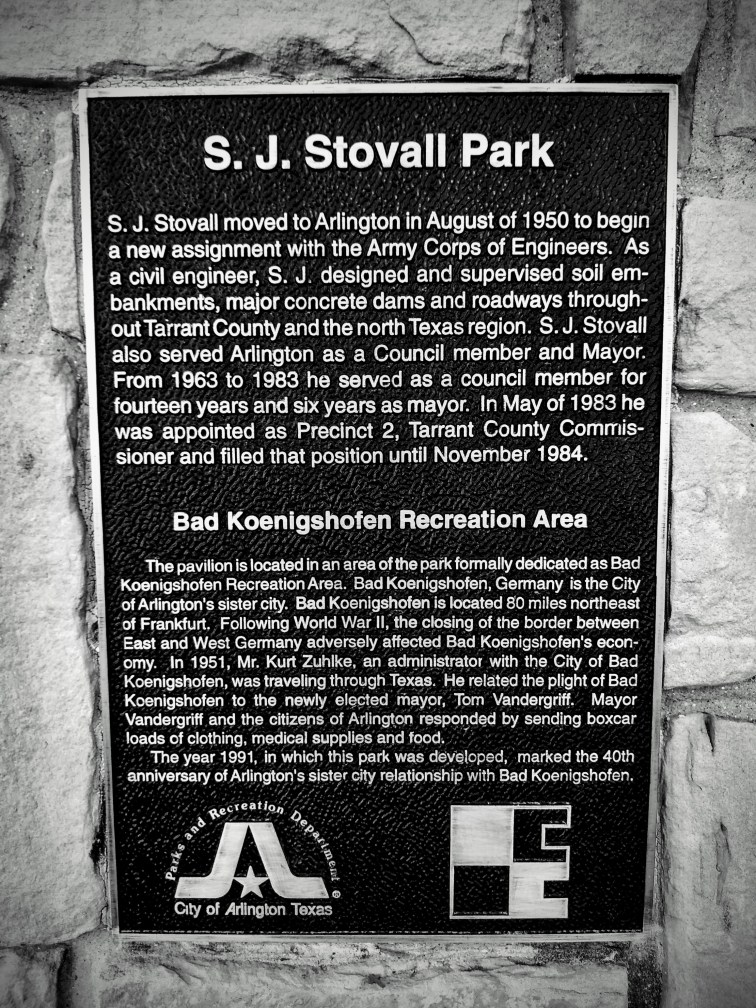 Stovall Park in Arlington pays tribute to Bad Königshofen, its people, and the relationship between the two cities. The main outdoor pavilion is modeled after one in Bad Königshofen.