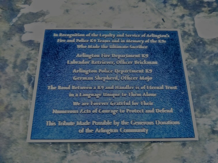 In recognition of the loyalty and service of Arlington’s Fire and Police K9 Teams and in memory of the K9’s who made the ultimate sacrifice.