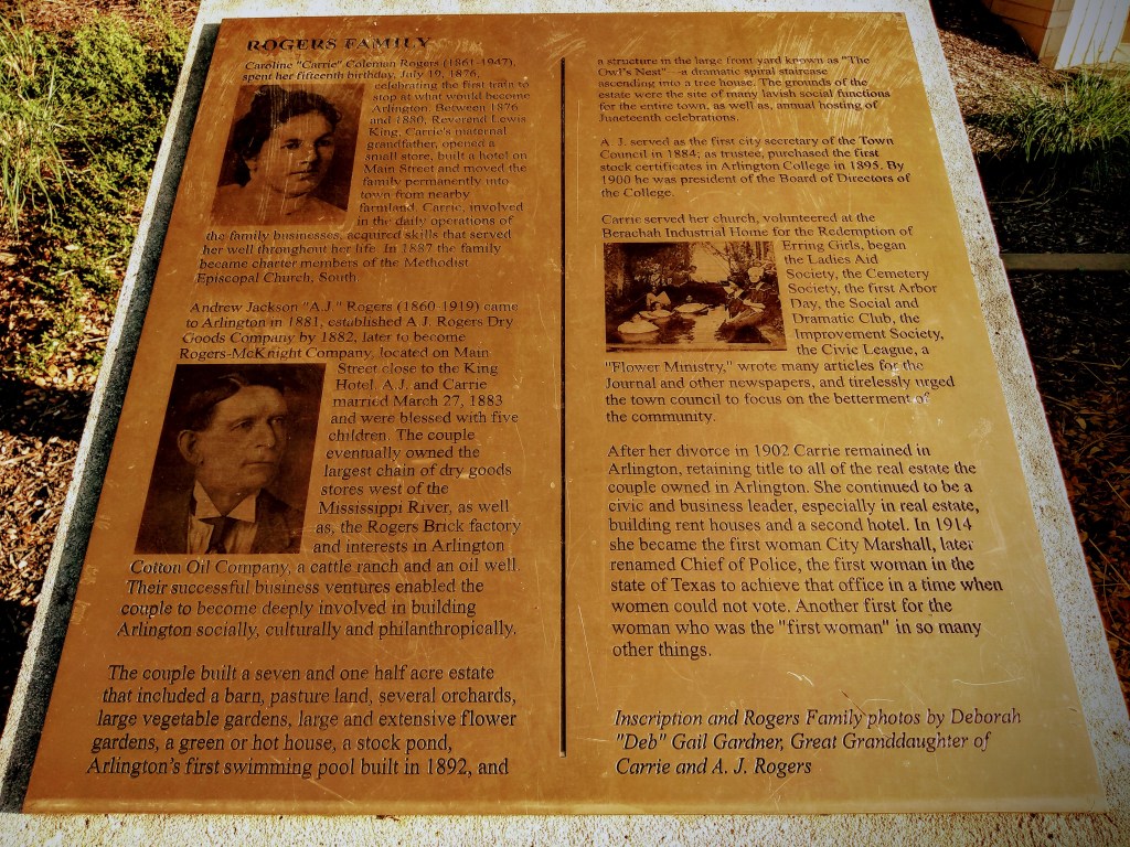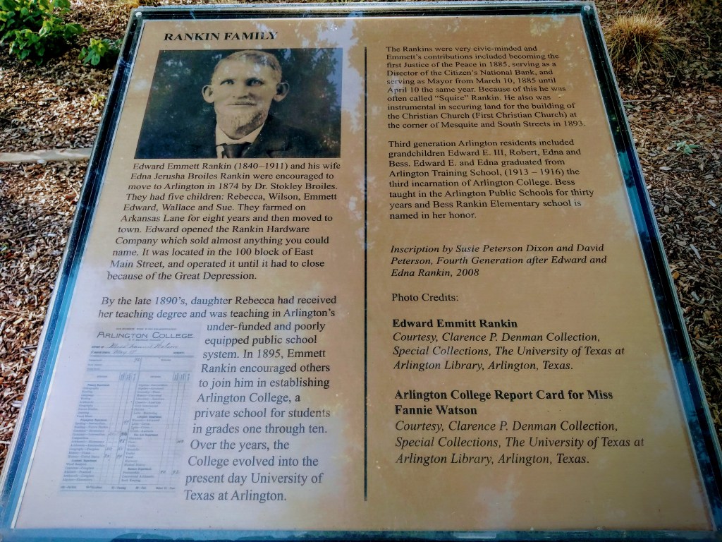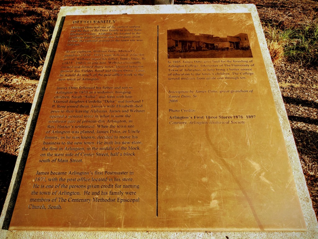 Founders Plaza also has plaques for six of the founding families of Arlington. These plaques provide information, stories, and photographs of the families and the town’s early days. Take a few minutes to read about the Rose, Rankin, Cooper, Collins, Ditto, and Rogers families. These families helped lay the foundation of modern-day Arlington.