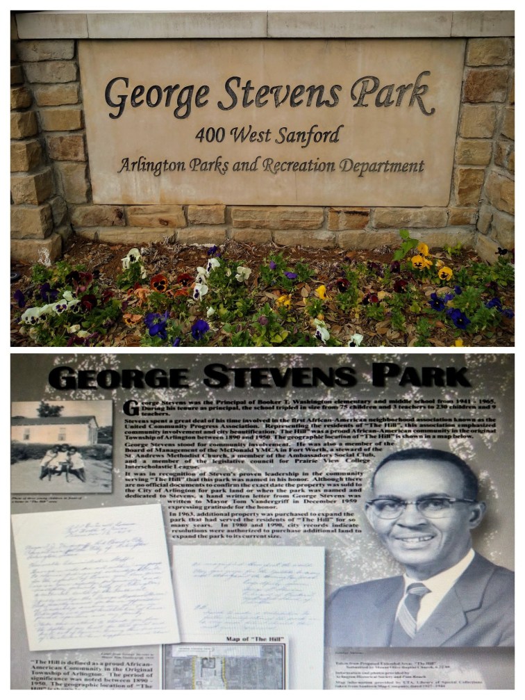 George Stevens served as Principal of Booker T. Washington School (and its precursors) for more than 20 years. The school tripled in size during his tenure. As a tribute to his impact, George Stevens Park opened in 1957. A Texas Historical Marker stands there today for The Hill, along with information about George Stevens.