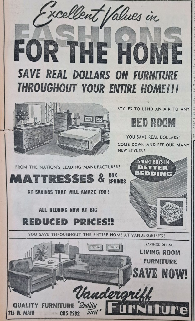 Newspaper ads are from the October 3, 1957 edition of the Arlington Journal newspaper, on display at the Arlington Public Library.