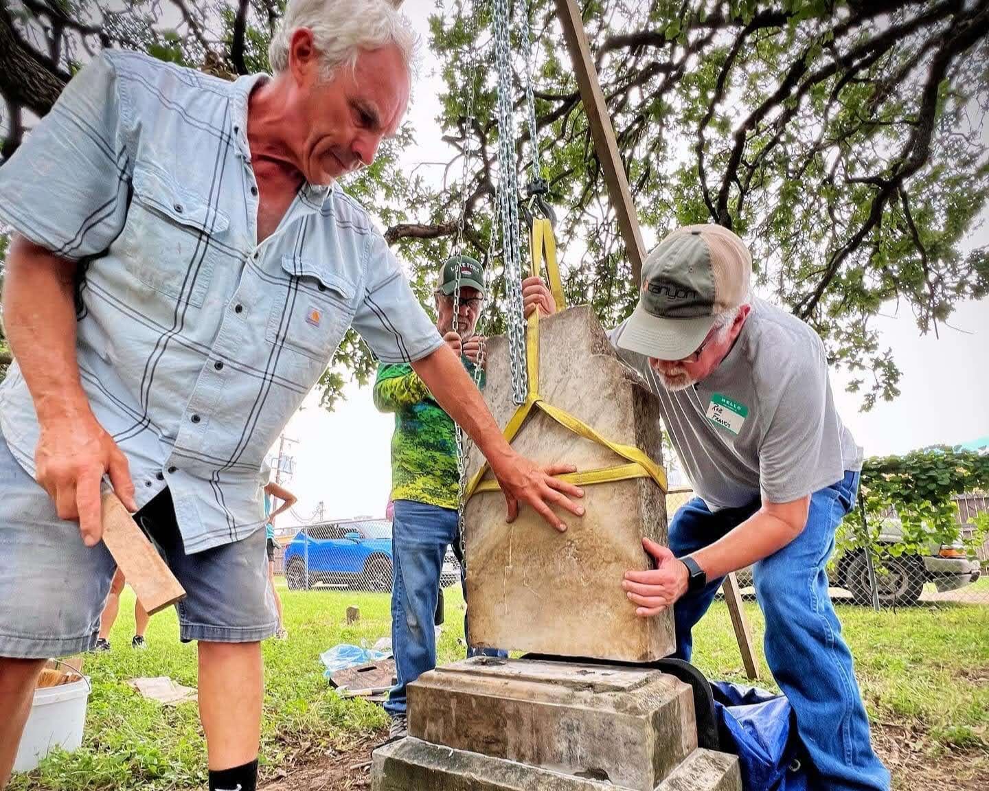 Throughout the day, attendees cleaned, repaired, or reset several stones. Towards the end, the videographer interviewed Jon for final thoughts. Jon stated that it was a productive day with many people getting involved, which is the purpose of the 48StateTour. Despite the warm temps, there was a great turnout and a sense of community.