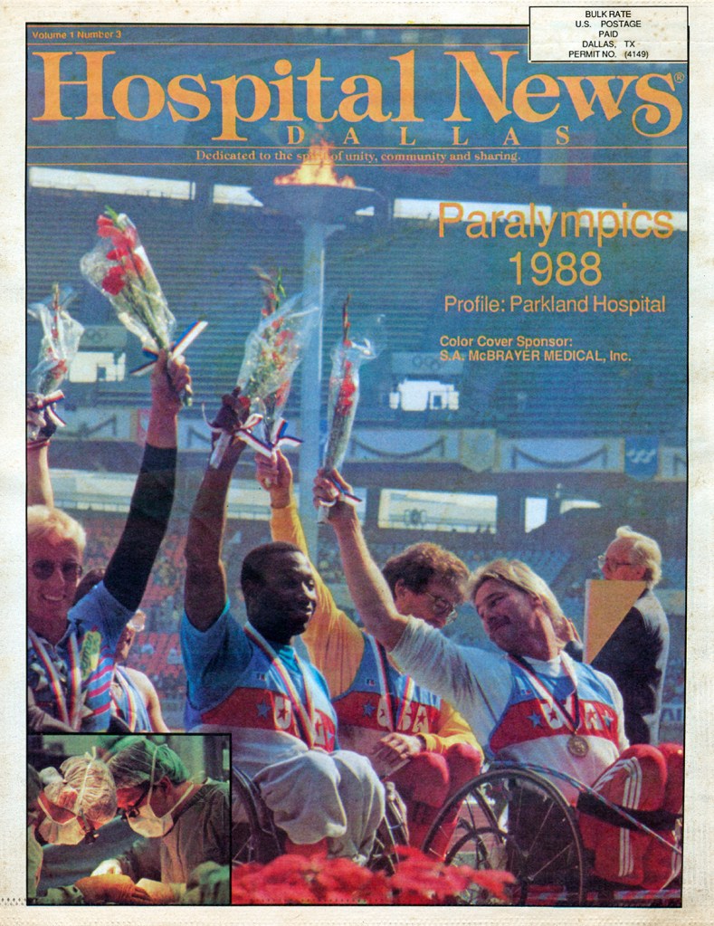 The 1988 U.S. men’s relay team on the cover of Hospital News Dallas.