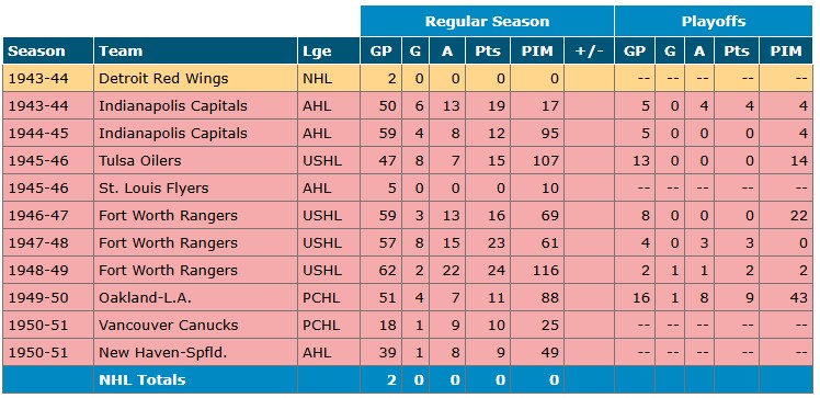 Kane’s hockey career began in 1943 when he signed with the Detroit Red Wings. Although his time with the Red Wings was brief, he continued playing for various minor leagues and teams for nearly a decade—including a stint with the Fort Worth Rangers of the United States Hockey League from 1946 to 1949. He played in nearly 450 games throughout his career. At 5’11” and 190 pounds during his hockey days, he was a defenseman with a tough and aggressive style. He also played baseball in the Canadian-American League for several seasons.