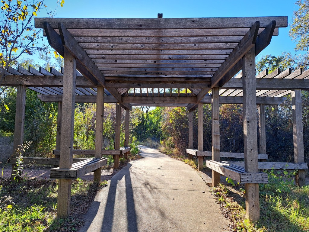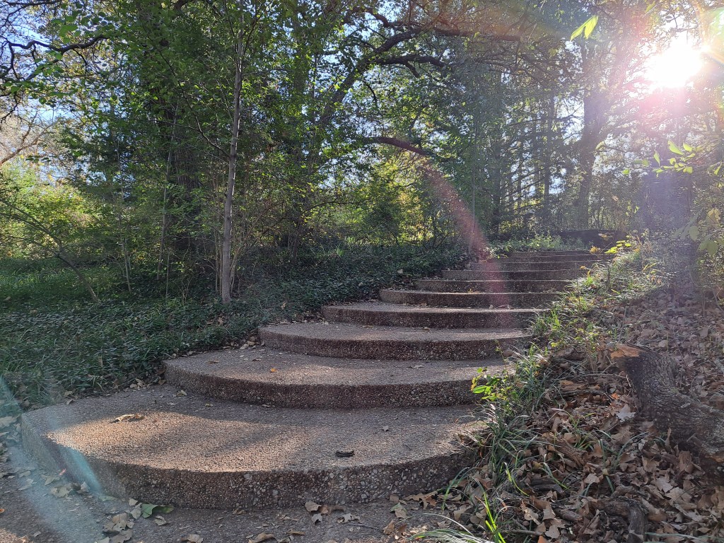 I visited on a Thursday, late afternoon in mid-November. North Texas was still more like early Spring than Fall. The temperature was pleasant 70 degrees and it was a bright, sunny day. The sun filtered through the trees. Sunlight and shadows mixed, causing an ethereal, sepia-tinted wonderland. With few people there this time of day, it was serene, still, and quiet. Although likely more colorful and in bloom during the Spring or Summer months, or at least after a decent rain, there was still plenty of green and vibrancy.
