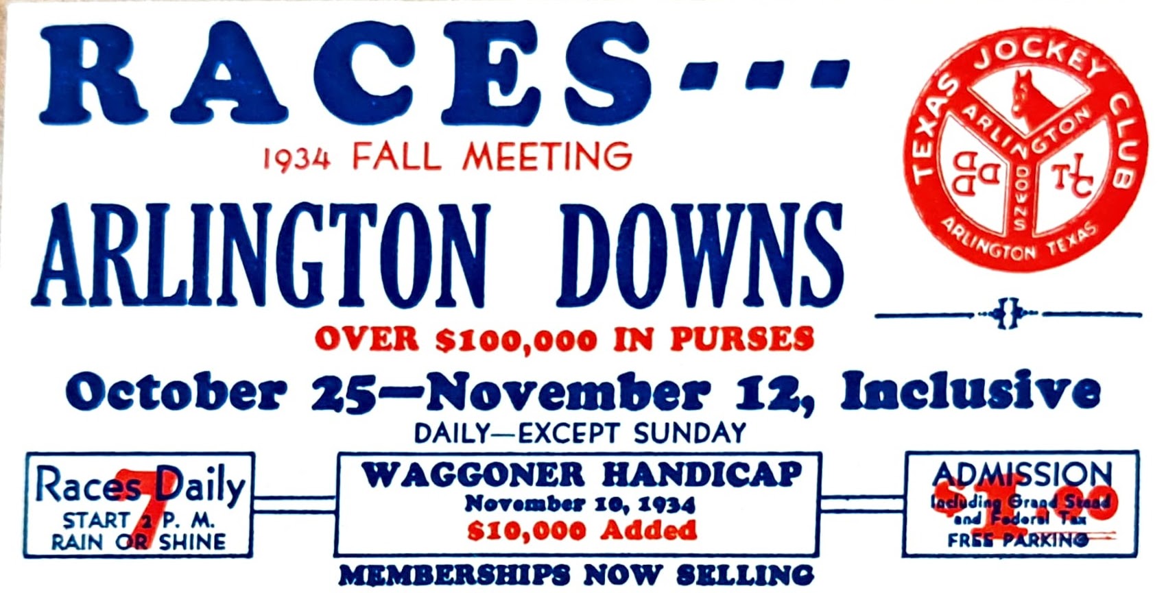 Arlington Downs is one of my favorite local history topics, as it combines the grit, glamour, and grandeur of horse racing, along with small-town Americana of Arlington into the 1930s, mixed with an entrepreneurial spirit, and a zest for being the best.