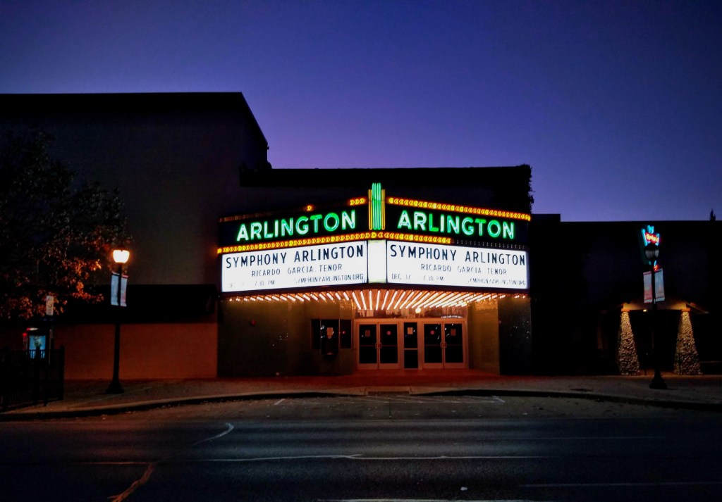 Today, the Arlington Music Hall is an intimate venue for live music, comedy, and other performances, with over a dozen monthly shows, including ones still from Symphony Arlington. The marque is a charming, nostalgic reminder of the good ol’ days and is an iconic sight downtown. With reasonably-priced tickets, free parking, and plenty of restaurants and bars nearby, a performance at Arlington Music Hall can be part of a fun night out in Downtown Arlington. (Support your small businesses and historic sites!)
