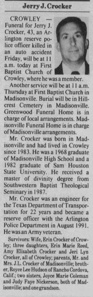 Jerry Crocker (1948-1992) was a Reserve Arlington Police Officer killed in the line of duty.