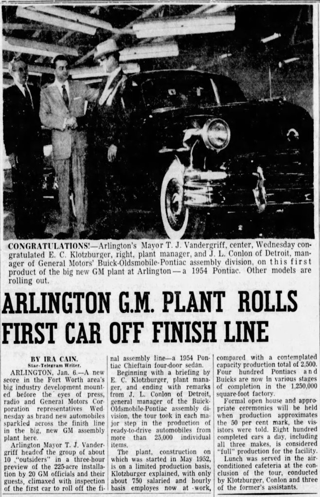 Getting the GM plant was a pivotal moment in Arlington’s history. Their arrival paved the way for the Great Southwest Industrial District, Six Flags Over Texas, the Texas Rangers, and likely even the Dallas Cowboys. Indeed, Arlington would be a much different city today without GM, and we’re fortunate that they have stayed here for over 70 years as part of our community.