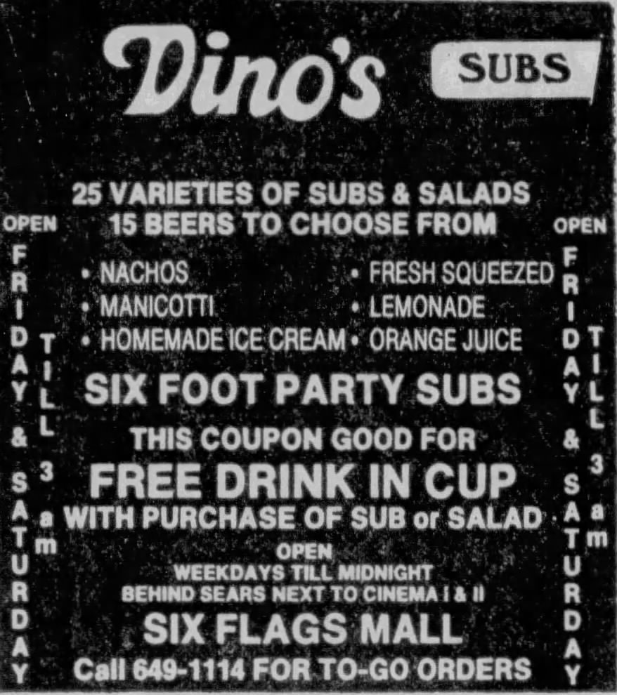 Early ad for Dino’s Subs