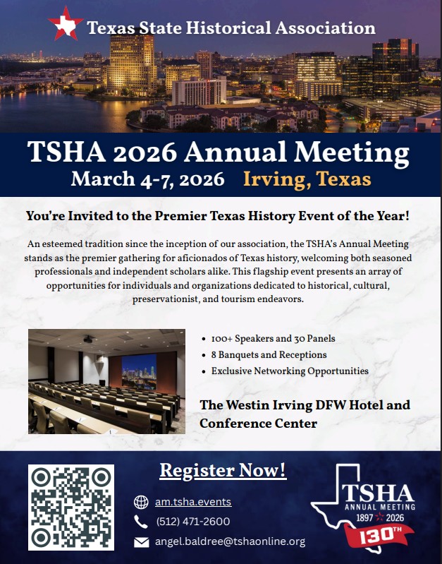 The TSHA’s Annual Meeting “stands as the premier gathering for aficionados of Texas history” and typically attracts over 700 attendees. This year’s event was held at the Westin Dallas-Fort Worth Airport hotel in Irving from March 4–7, featuring a full schedule of panels, presentations, and special events.