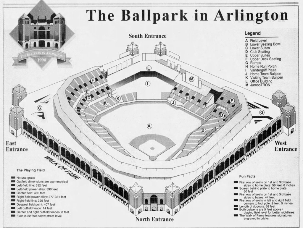 A diagram of The Ballpark in Arlington ahead it’s opening