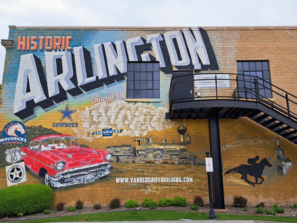 ‘Historic Arlington’ mural by Lee and Sheri Hay on the Vandergriff Building at 255 N. Center Street