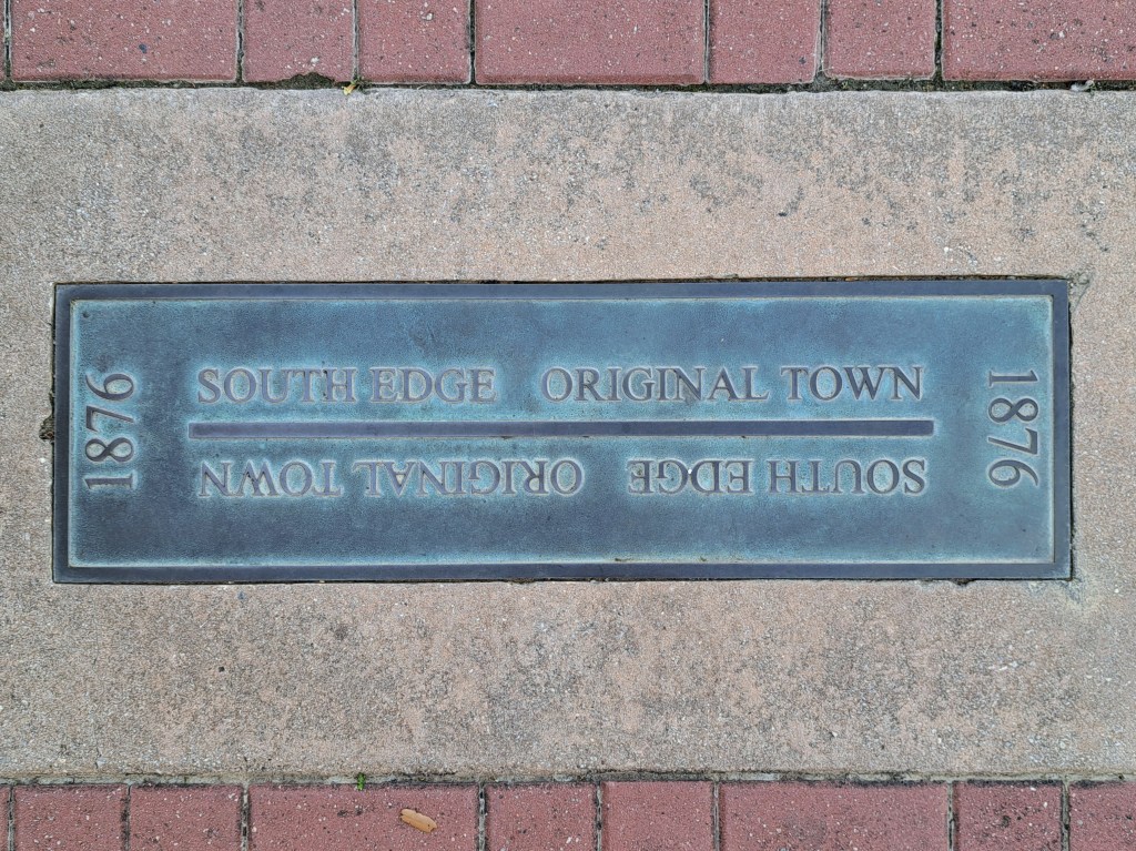 South Edge Original Town – sidewalk plaque near Center and South Streets