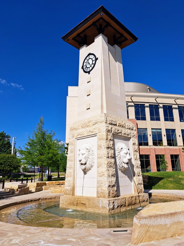 Follow the path past the City Council Chambers to Mineral Well Public Plaza. The fountain, which also includes a clock tower, honors Arlington’s Mineral Well, serving as a central landmark, gathering place, and early tourist attraction. A little further is Arlington’s first standalone Post Office, built in 1939. Now Worthington Bank, admire its classic revival architecture common for post offices of that era.