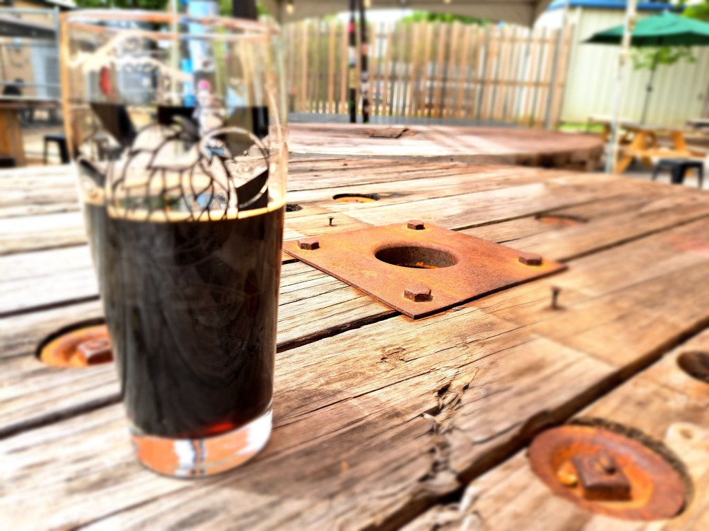 The brewery is generous about giving samples, so I try a taste of almost everything that comes out. (I always ask, “What’s new?” when I get there, and they’re proud to show off and share their latest offering.) More often than not, I like it enough to get a pint. I also like that they offer half-pours—8 ounces instead of 16 ounces (or 5 ounces instead of 10 ounces, depending on the style) in case you want more than a sample but not a whole glass. I like trying new ones, but I like the dark side even more, and I will almost always take a stout or porter if it’s available. During one of my earliest visits in the winter, they had four stouts available, including two imperial stouts, an oatmeal stout, and a casked version. I’m looking forward to the fall and winter months to see what they have this time around.