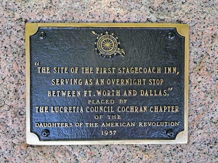 “The site of the first Stagecoach Inn, serving as an overnight stop between Ft. Worth and Dallas.”